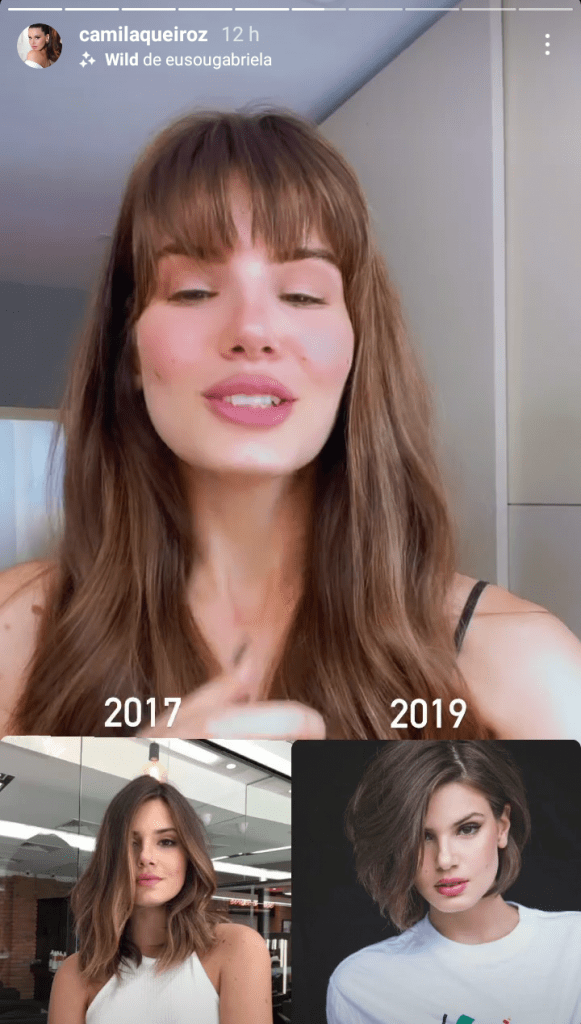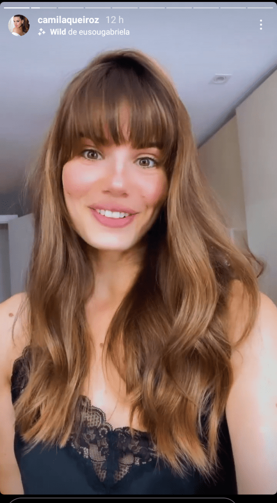 A atriz, Camila Queiroz, ficou famosa com a personagem angel em verdades secretas. Os cabelos longos e fios retos da moça, davam o tom da personagem mais recatada, do interior.