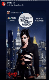 A cantora Anitta, que está sempre nas paradas de sucesso e nos holofotes do sites de fofoca, deu entrevista ao programa “The thonagt Show” da rede NBC.
