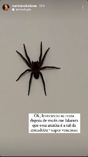 A atris e influenciadora, Marina Rui Barbosa , postou em seus stories, do Instagram, a imagem de uma aranha.