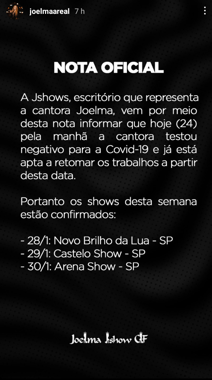 A cantora Joelma, ex Calypso, esteve afastada do trabalho durante a semana passa, desde que tentou positivo para a COVID-19 , pela terceira vez. Toda a sua agenda de show e eventos ficou suspensa , até que a famosa estivesse recuperada para retomar seus compromissos. Hoje, 24 de janeiro, a produção divulgou um novo comunicado … Ler mais