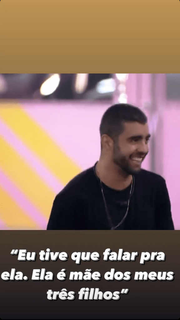 Ele disse ter comunicado a ela, já que é mãe de seus três filhos, e a moça a desejou sorte, e apoiou a sua participação.